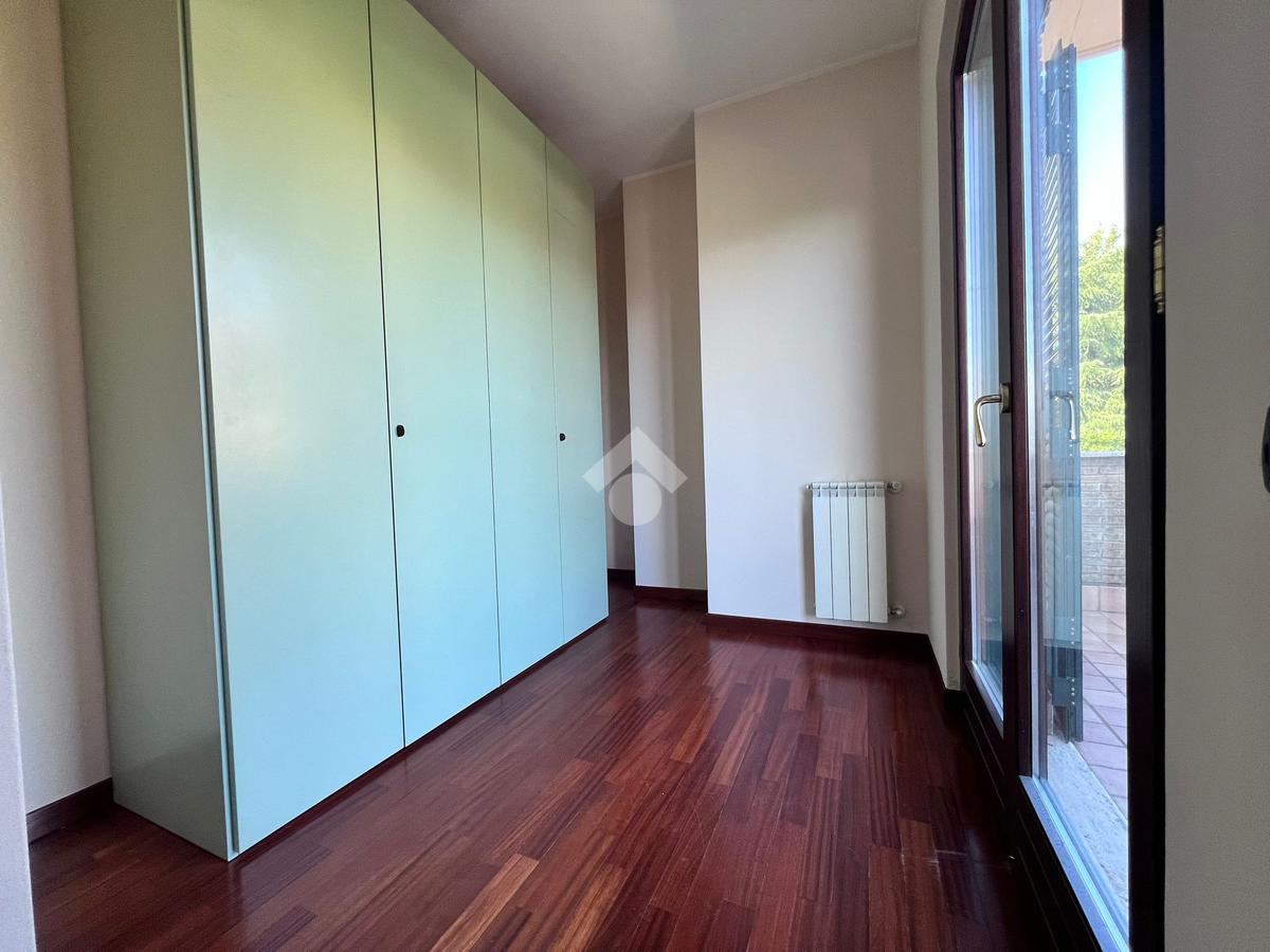 Al primo piano si trova la zona notte, che accoglie la camera padronale con bagno privato e spogliatoio, offrendo un'oasi di relax e privacy. Due ulteriori camere, di cui una dotata di spogliatoio, sono servite da un secondo bagno, garantendo il massimo comfort per tutta la famiglia.