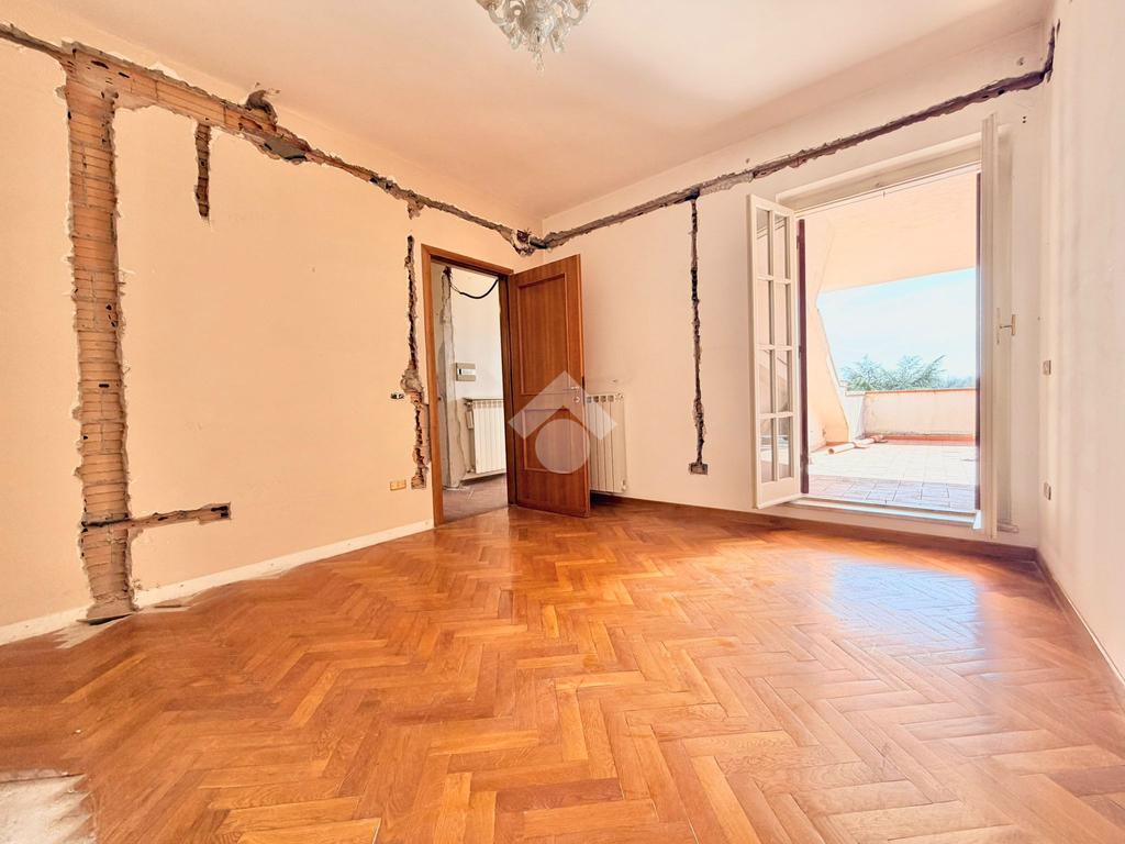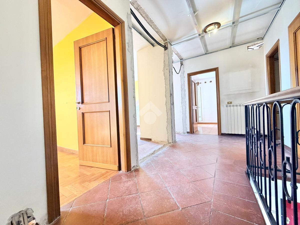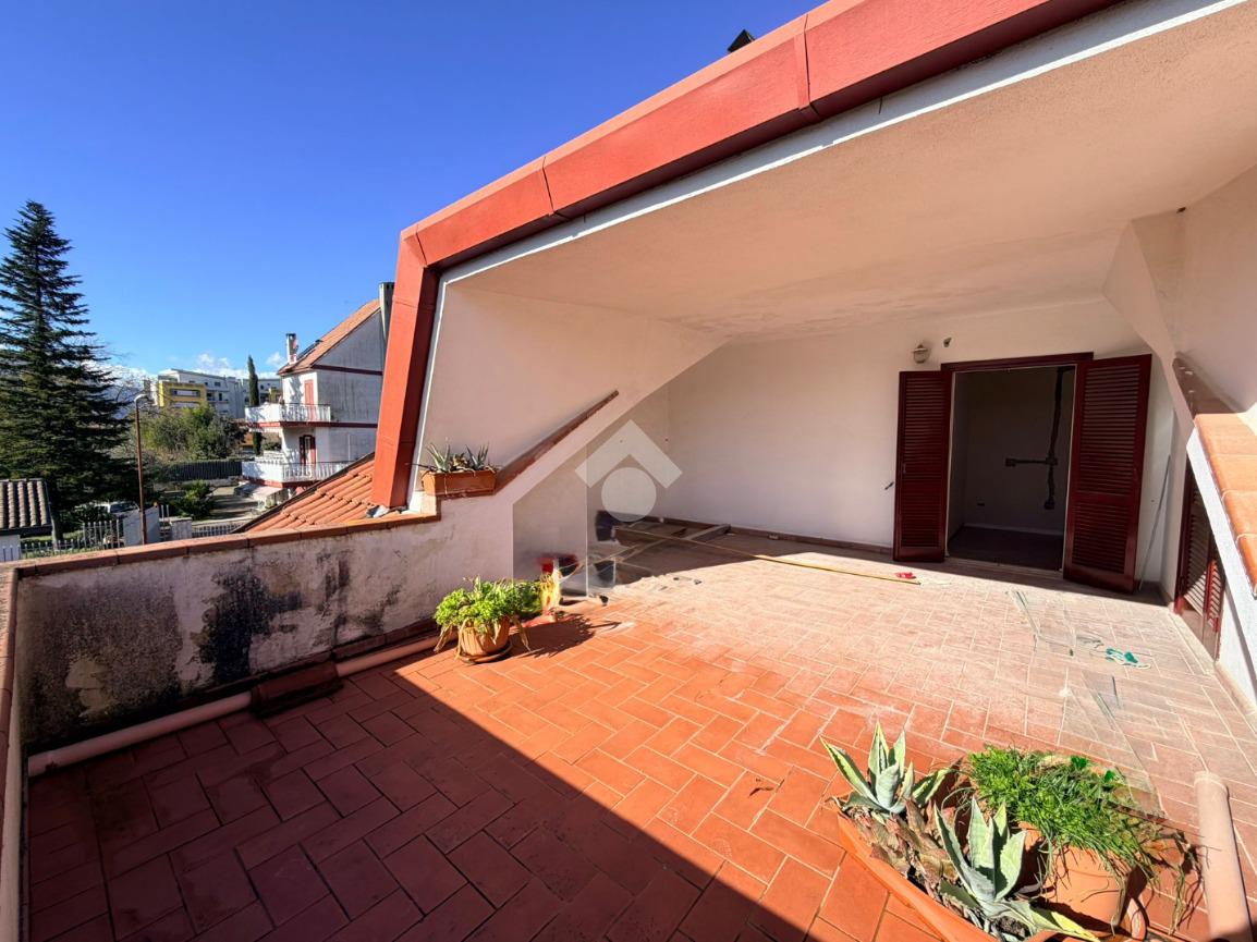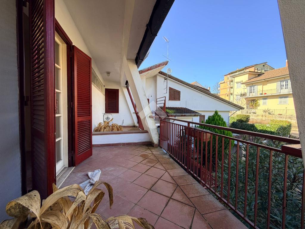 A Frosinone, nel cuore di un contesto residenziale di sole ville, in una traversa riservata di Via America Latina, proponiamo in vendita una prestigiosa porzione di trifamiliare che unisce indipendenza, ampiezza e una posizione invidiabile. La proprietà è dotata di una corte esterna privata e da un giardino, che accolgono l'abitazione garantendo massima privacy e uno sfogo verde immediato. Superato l'ingresso, una comoda scala conduce al primo piano, dove si sviluppa il cuore della casa. Un ampio disimpegno organizza gli spazi, conducendo verso un salotto luminoso e una cucina abitabile, entrambi con uscita diretta su uno splendido terrazzo panoramico che domina il paesaggio circostante. Questo livello è rifinito con un raffinato parquet e comprende due camere da letto, di cui una con bagno interno, oltre a un secondo bagno a servizio del piano. L'ultimo piano ospita una vasta zona mansardata caratterizzata dal calore del cotto, un ambiente estremamente versatile che si presta a essere modellato secondo le proprie necessità. Oltre a una camera da letto e un bagno già presenti, lo spazio residuo permette di ricavare agevolmente ulteriori stanze o zone hobby. L'immobile beneficia di impianti parzialmente rinnovati, con tracce già predisposte per completare l'ammodernamento in totale semplicità. Questa soluzione rappresenta la scelta ideale per chi desidera vivere in una zona esclusiva, personalizzando una dimora di pregio dai volumi generosi.